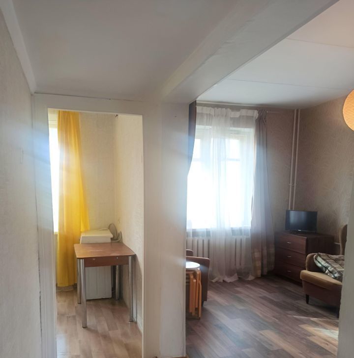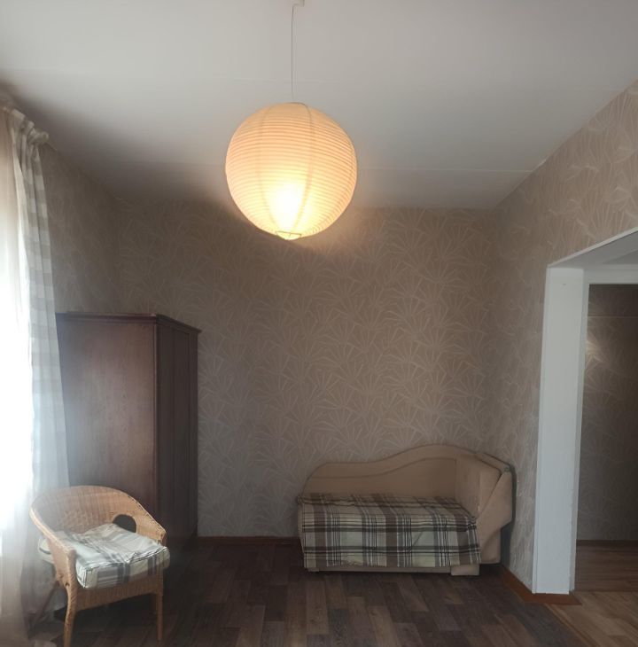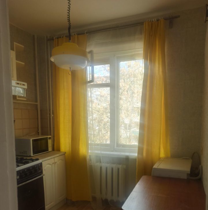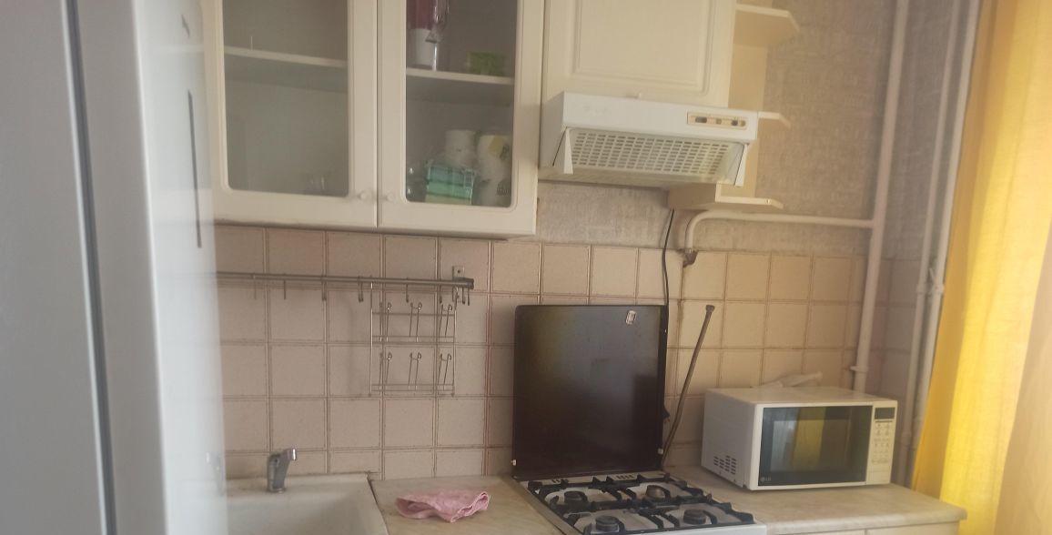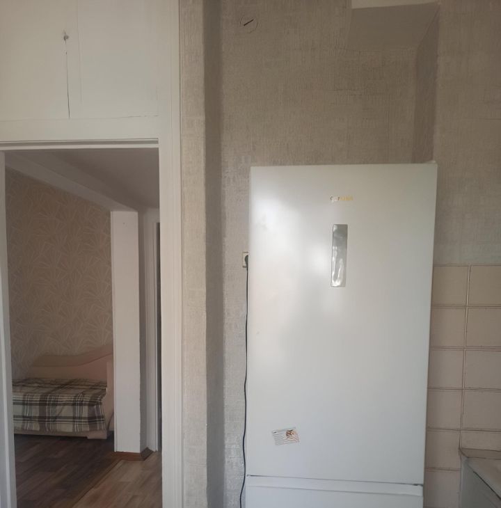 В квартире из техники есть двухкамерный холодильник, вытяжка, плита покупается новая, стиральная машинка, микроволновка, телевизор. Также покупается новый стол на кухню. Есть в комнате шкаф и тахта, два кресла, комод и абажур. Возможно рассмотреть спальное место другое и шкаф дополнительный. Высокие потолки, окна деревянные, не застеклённый балкон. Дом под реновацию, ставят сроки 28-38 год.
