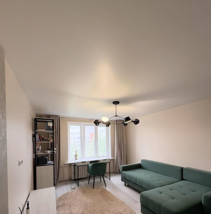 В квартире сделан современный евроремонт. Просторная комната обставлена необходимой мебелью, что позволяет комфортно разместиться как одному человеку, так и паре. Кухня также оборудована всей необходимой мебелью и техникой, в том числе холодильником и стиральной машиной. Ванная комната совмещена с туалетом и оснащена ванной. Из окон открывается вид на тихий двор, а на балконе можно наслаждаться свежим воздухом. Высота потолков составляет 2.64 метра, что делает помещение ещё более просторным.