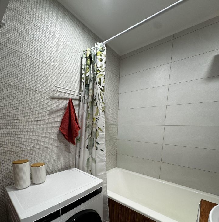 В отделке использовались качественные материалы. В комнате уложен паркет, в остальной части квартиры уложены теплые полы. Установлена новая бытовая техника, стиральная машина с функцией сушки, вся мебель новая.