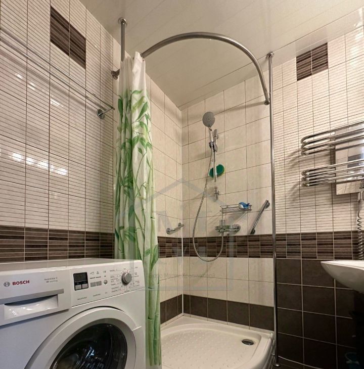 Санузел раздельный, ванная комната оборудована душевой кабиной и стиральной машиной.