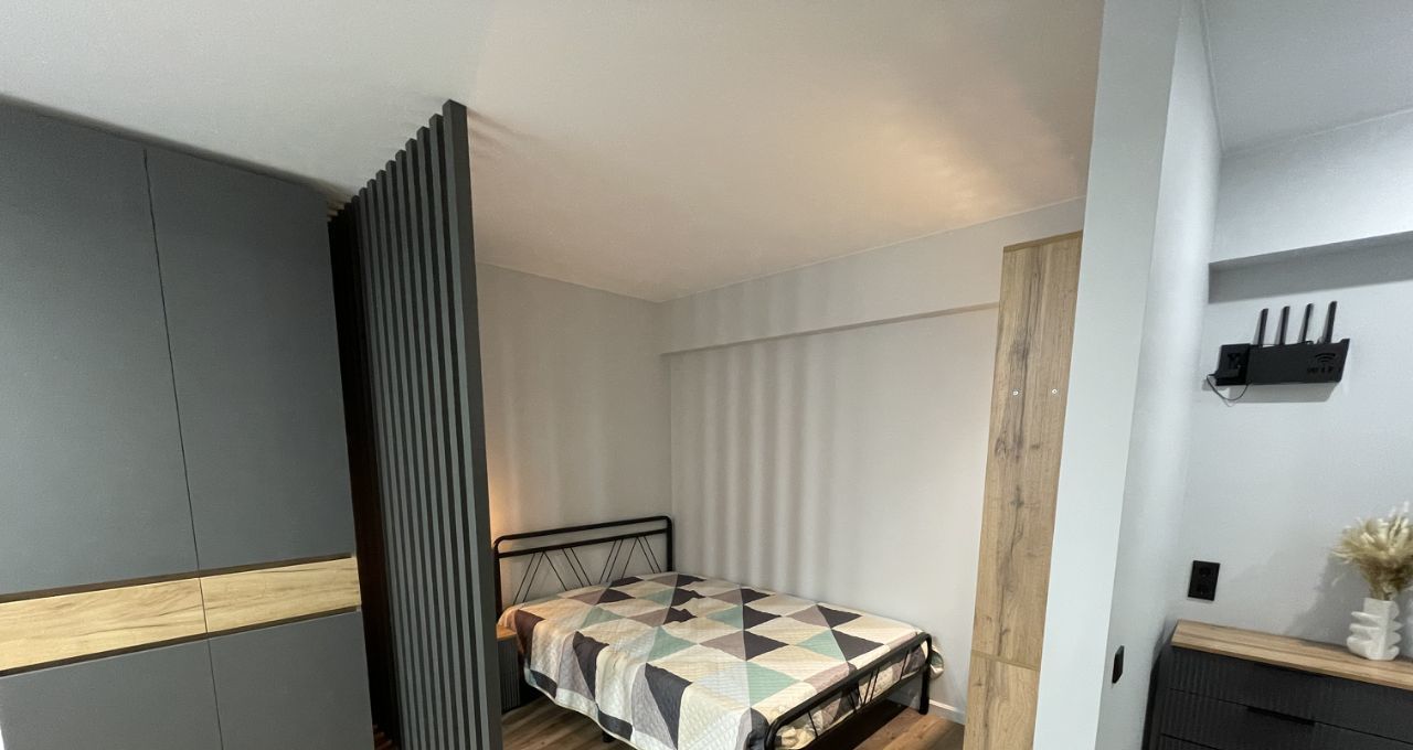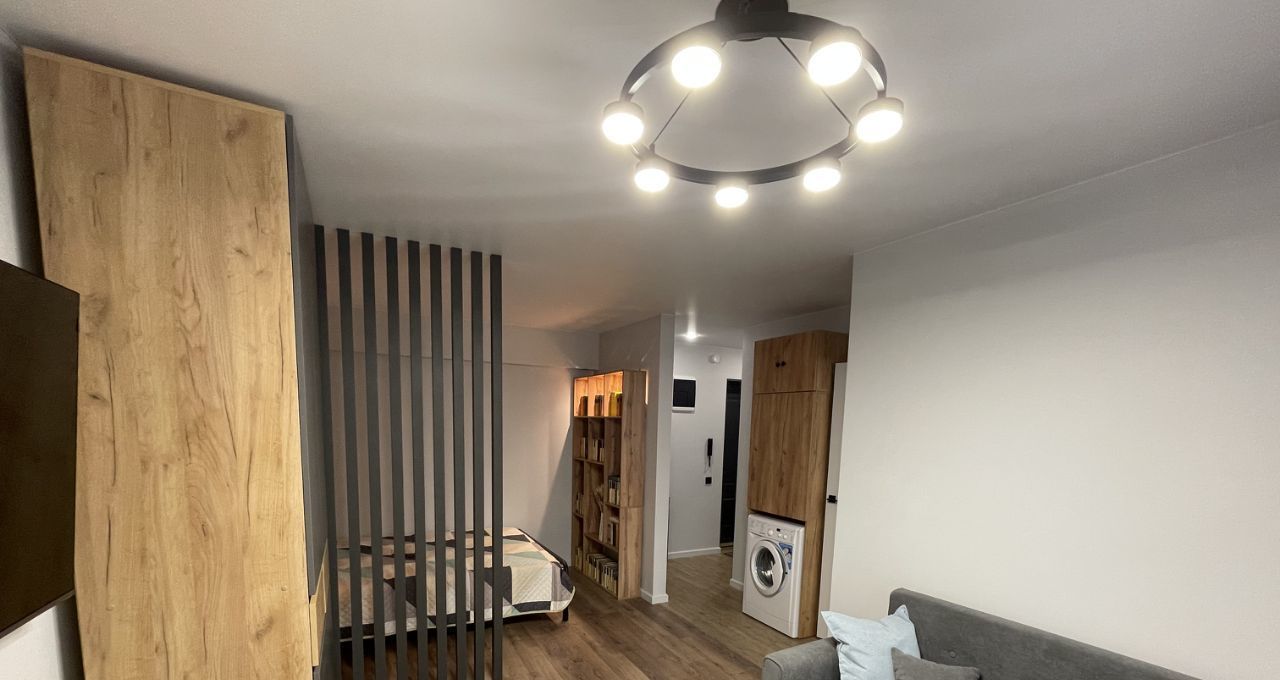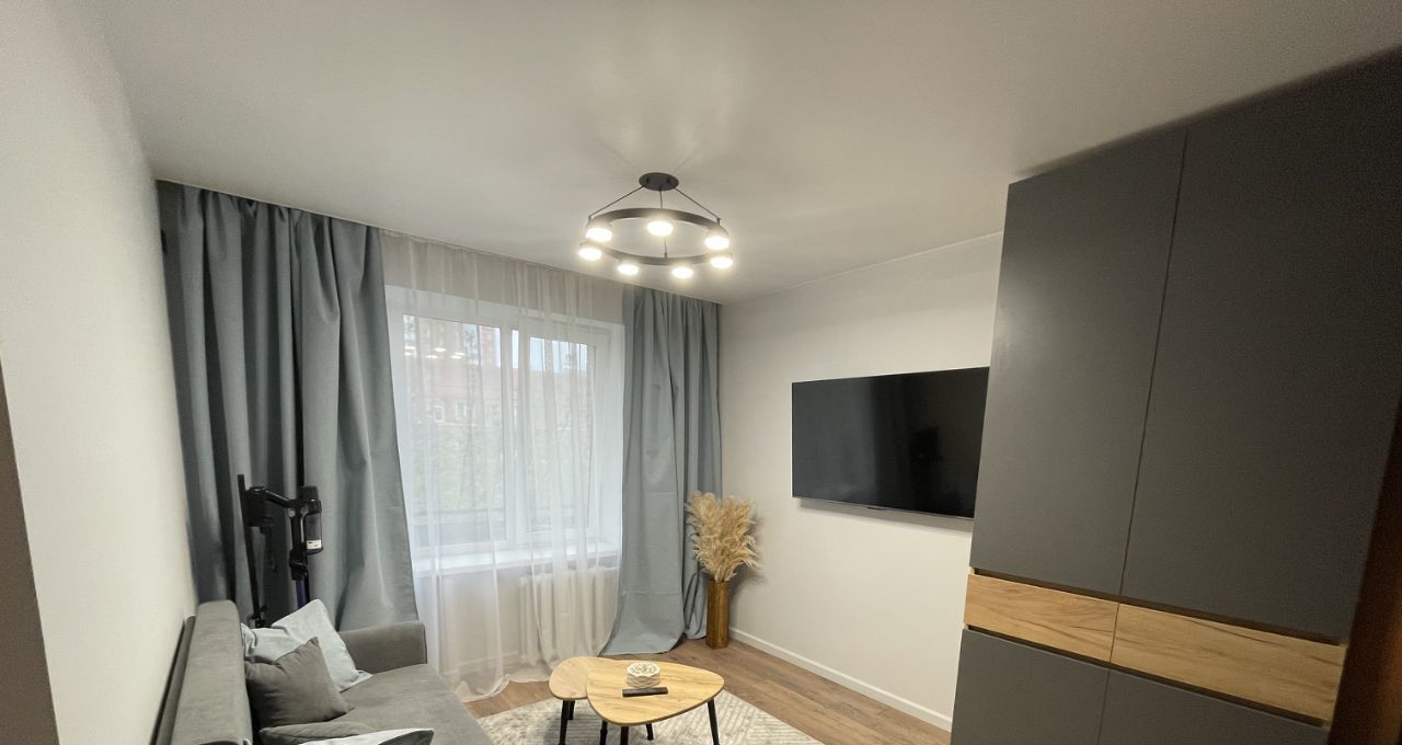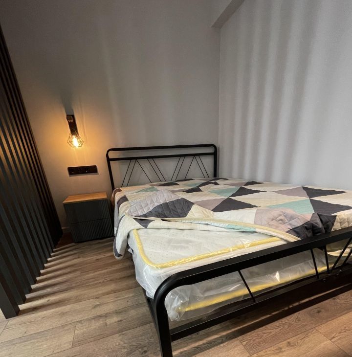 В гостиной есть большой телевизор (диагональ 55), диван-кровать и отдельно-стоящая кровать с ортопедическим матрасом. Вся мебель в квартире новая. С матраса, специально не стали снимать упаковочную пленку.