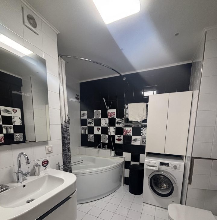 Квартира с дизайнерским ремонтом, полностью меблирована и оснащена всей необходимой техникой: кондиционер, холодильник, посудомоечная и стиральная машины, а также телевизор. В просторной кухне и комнате размещена удобная мебель. Санузел совмещенный, оборудован ванной. Высота потолков — 2.6 метра, окна выходят на улицу, что обеспечивает хорошее естественное освещение. В квартире есть лоджия, где можно приятно провести время.