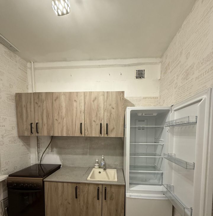 В квартире сделан косметический ремонт ( на стадии завершения) обстановка включает мебель на кухне и в комнате. Кухня площадью 6 кв. м оборудована необходимой техникой.