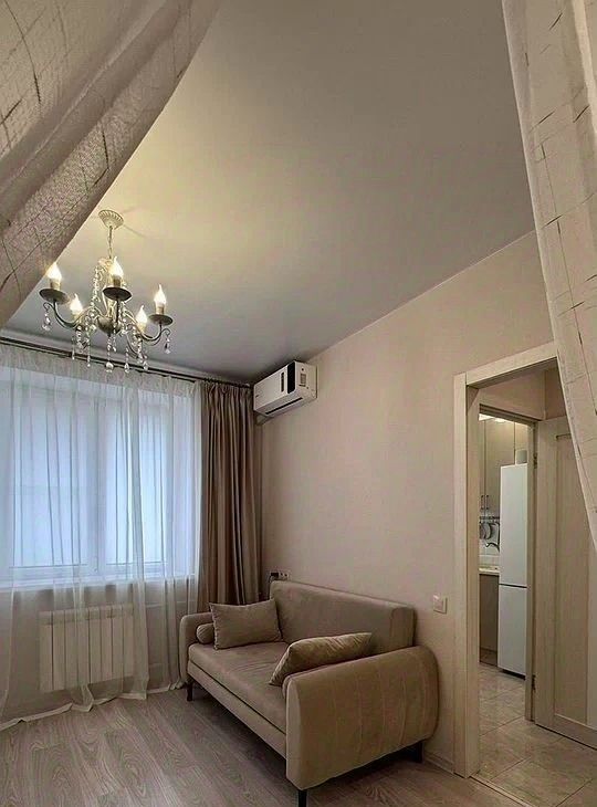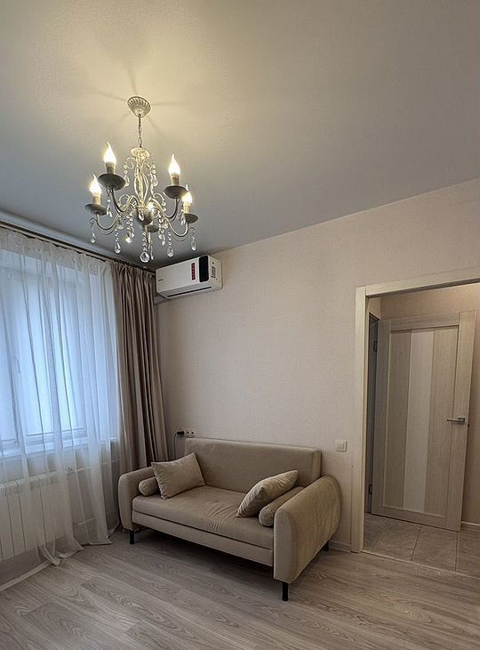 Квартира с евроремонтом, готова к проживанию. Просторная комната меблирована, на кухне есть все необходимое для комфортного приготовления пищи. В квартире установлены кондиционер, холодильник, телевизор и стиральная машина, поэтому можно сразу заселяться и жить без лишних забот. Совмещенный санузел оборудован ванной, поэтому можно расслабиться после трудового дня.