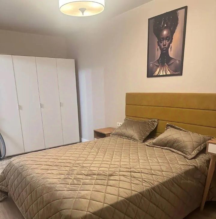 Спальня оборудована удобной кроватью и вместительными шкафами. В ванной комнате современная сантехника и совмещенный санузел.
