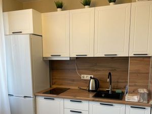 ЖК "Букинист". Студия. Только что закончен качественный евроремонт. Фото сделаны во время ремонта. Кухонный гарнитур с бытовой техникой будут установлены в ближайшее время. Уже установлены: двуспальная кровать, диван, кресла, холодильник. Натяжной потолок. Охраняемая территория со своей парковкой. Охрана. Консьерж.