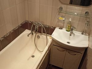 Санузел совмещен, ванна, стиральная машина, теплый пол, бойлер на случай отключения горячей воды.