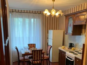 Спальня 22 м, кухня 10. Качественный и стильный ремонт, делала для себя не предполагалась сдача квартиры. Кондиционер, теплые полы - кухня ,прихожая. Тканевые натяжные потолки, испанская и финская сантехника, стеклопакеты, огромный 2м холодильник BOSH, стиральная машина MIELE , кованая кровать 180х200см с качественным ортопедическим матрасом, телевизор 55. Установлен новый, очень большой шкаф-купе с зеркальными дверями ( на фото предыдущий шкаф)