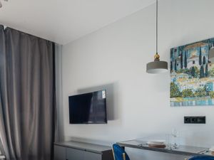 Квартира с новым ремонтом. Мебель, техника - все новое. Интерьер в спокойных тонах, вся мебель и техника хорошего уровня. В комнате большая кровать 180х200 см, большой двойной гардероб, сплит система Mitsubishi. Ванна чугунная Roca, стиральная машина Hotpoint-Ariston. Встроенная кухня с полноценным духовым шкафом и вытяжкой, в вентиляцию, холодильник No frost. Окна квартиры выходят во двор, тихо, высоко, светло, красивый вид. Большая лоджия. В квартире сделана шумоизоляция. Есть отдельная гардеробная комната с системой хранения, расположение полок регулируется. Красивый подъезд, двор без машин, пропускная система, круглосуточная охрана.