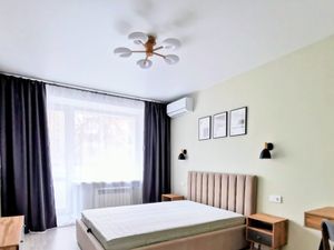 Сдается 3 комнатная квартира с ЕВРОРЕМОНТОМ. Планировка: Студия (кухня с гостиной) с выходом на балкон, Основная спальная комната с огромным шкафом, детская спальная комната, кладовая-гардеробная, с/у. Все окна выходят во двор. Квартира полностью укомплектована мебелью и техникой (стиральная машина, посудомоечная машина, холодильник, телевизор, бойлер, кондиционер). Сдается на длительный срок.