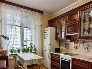 Есть вся необходимая техника для жизни: кухня, холодильник, электроплита, стиральная машина, шкаф, вешалка, шкаф купе (диван докупается собственником).