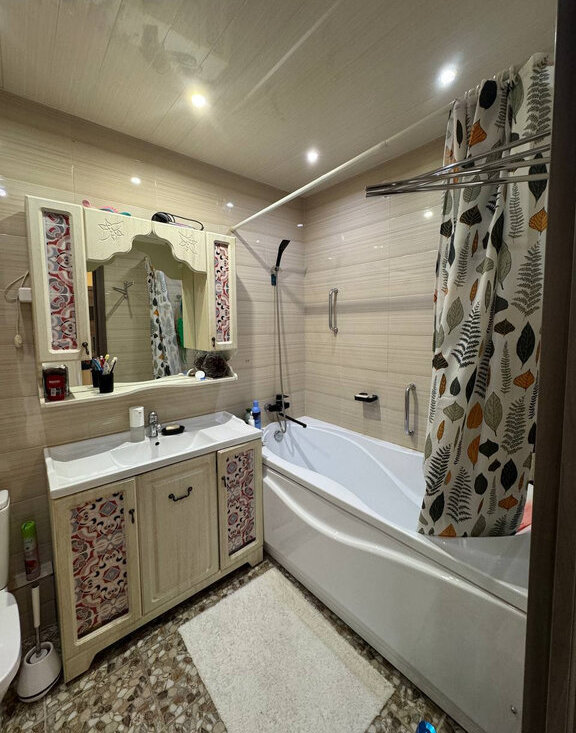 В квартире сделан евро ремонт. Комната светлая и просторная. Кухня оборудована всем необходимым для комфортного приготовления пищи. Санузел совмещенный, что увеличивает удобство пользования. Есть 2 балкона(1 из них утепленный). Есть гардеробная. Мебель по договоренности.