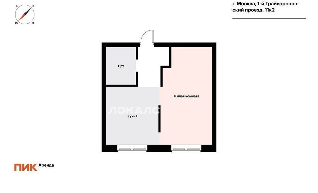 1-комнатная квартира: Москва, 1-й Грайвороновский проезд, 11к2 (31.6 м²)