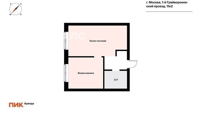 1-комнатная квартира: Москва, 1-й Грайвороновский проезд, 11к2 (33.5 м²)