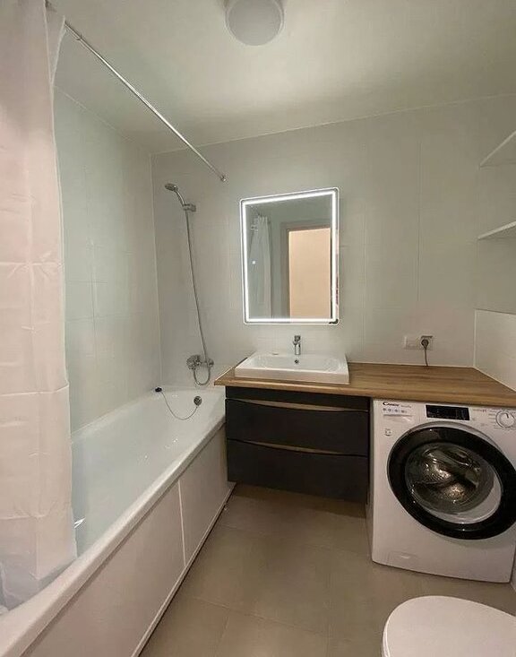 Спальня, уютное убежище в этой квартире, приглашает вас погрузиться в мир сладких снов и покоя. Мягкие оттенки стен, теплый свет и комфортабельная кровать создают идеальную атмосферу для полноценного отдыха. Ванная комната, облицованная изысканным кафелем и оснащенная современной сантехникой, приглашает вас насладиться расслабляющими ваннами после долгого дня.