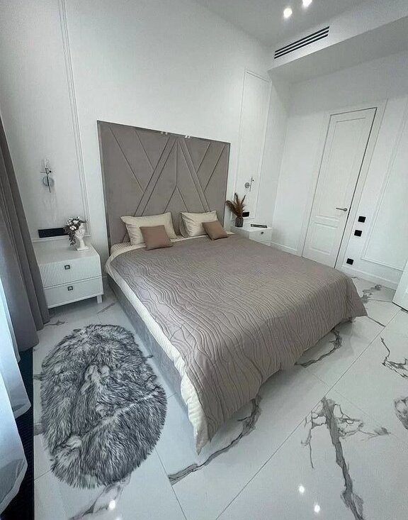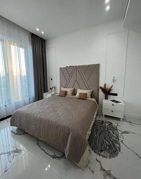 Элегантная отделка в стиле Неоклассика, вся мебель была выполнена на заказ и подчёркивает изысканный стиль.