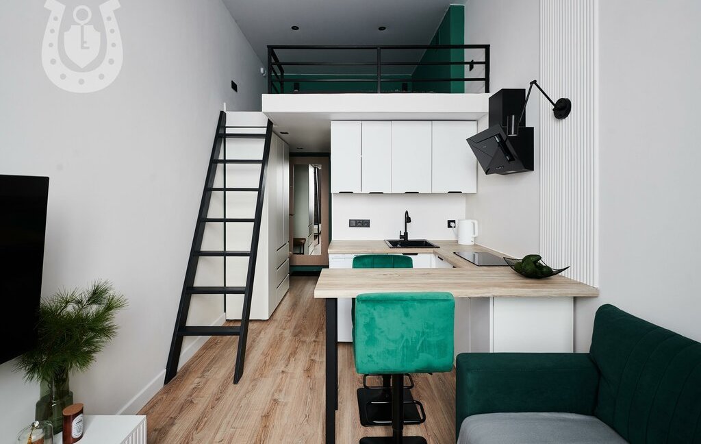 Функционал: зона кухни-гостиной, спальня на втором уровне, совмещенный сан/узел, коридор.