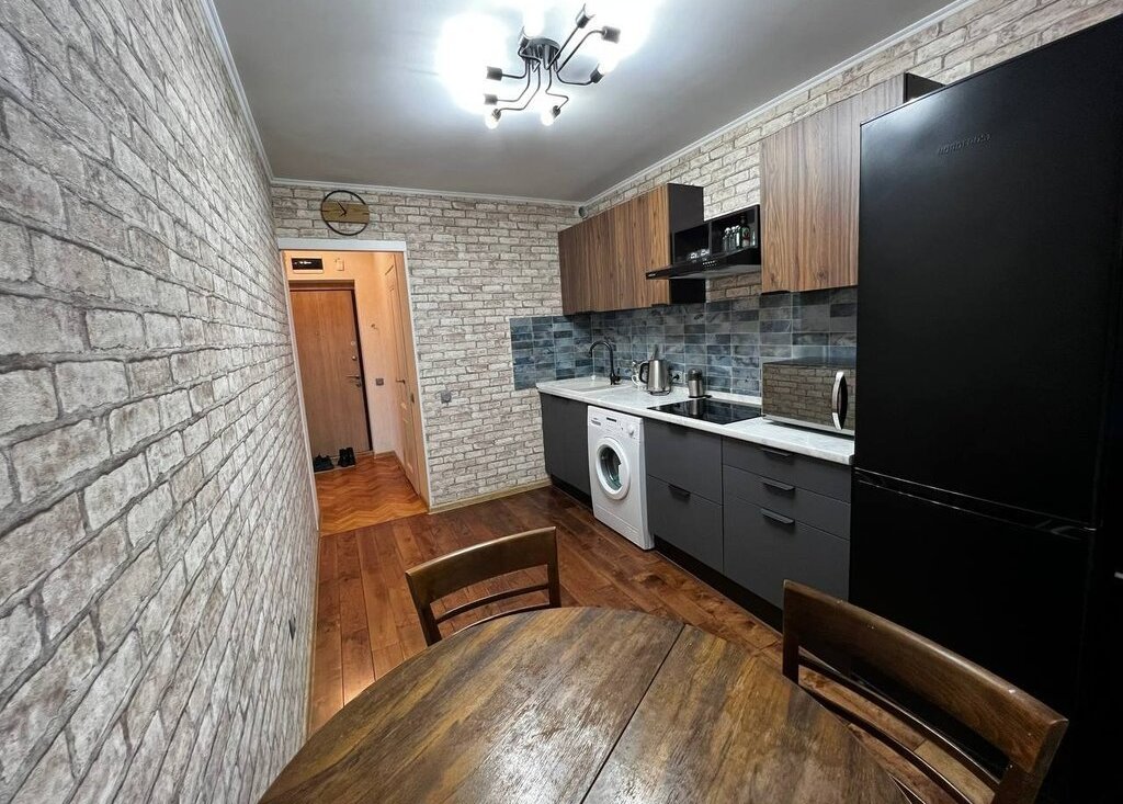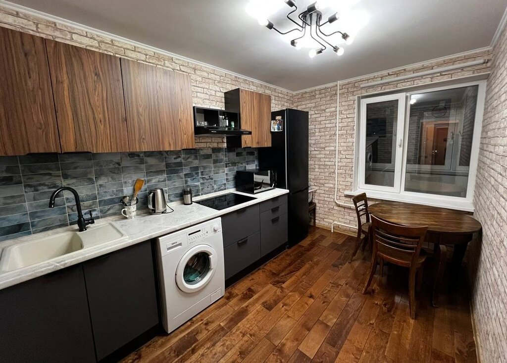 Продается уютная квартира с современным евро ремонтом. Просторная кухня площадью 9,6 м² оборудована стильной мебелью.