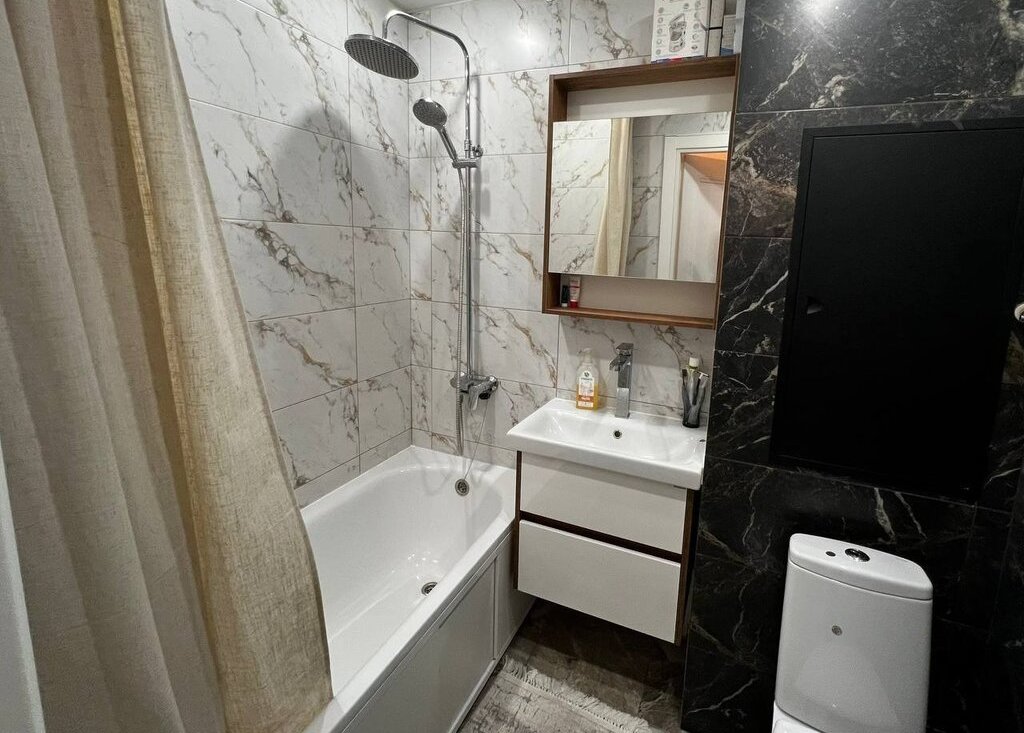 Санузел совмещенный, оформлен в современном стиле с качественной плиткой. Лоджия обеспечивает дополнительное место для хранения или отдыха. Дом блочного типа, построенный в 1974 году, оснащен пассажирским и грузовым лифтами, а также мусоропроводом.