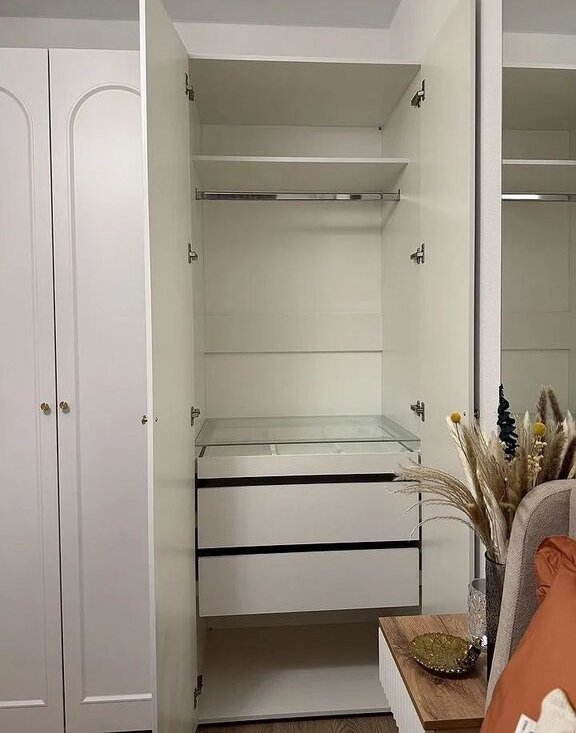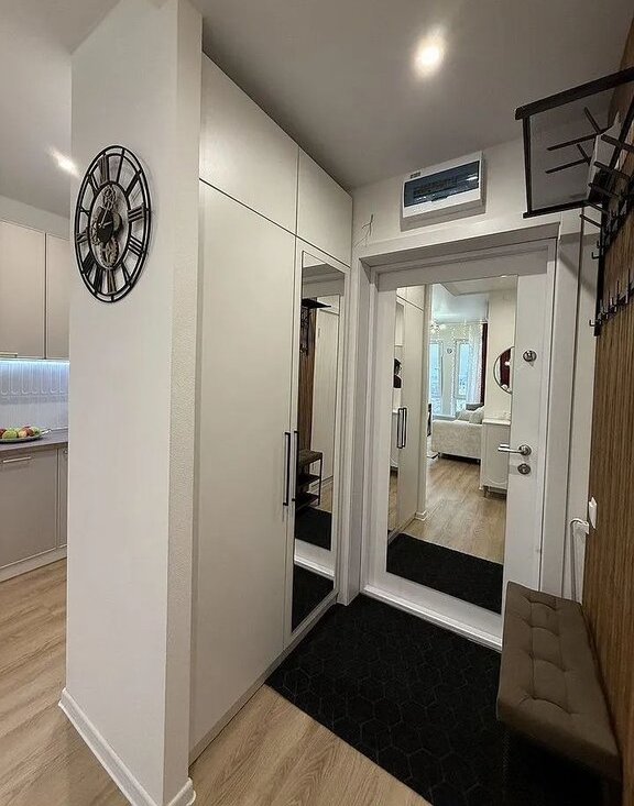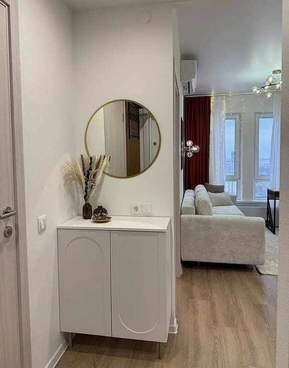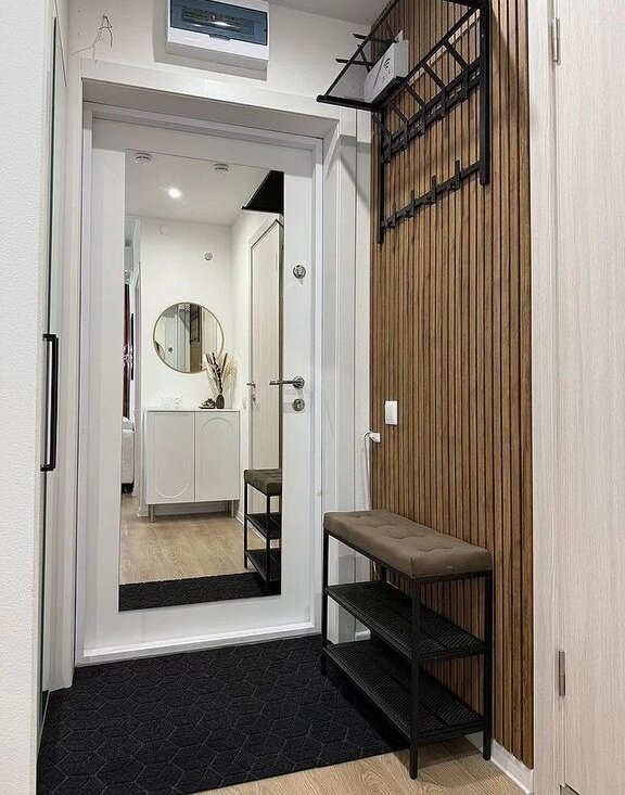 - в прихожей предусмотрен шкаф, тумба, банкетка и вешалка для верхней одежды.