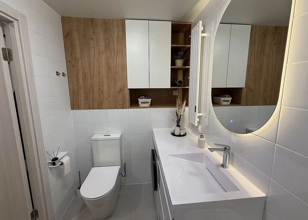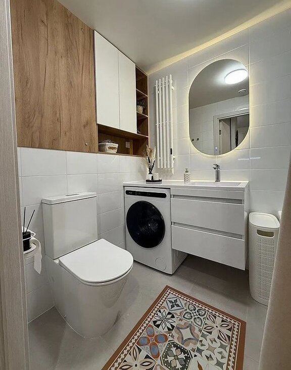 - в санузле для вашего комфорта заменены раковина и унитаз от застройщика, предусмотрена настенная сушилка, удобный шкаф и тумба, стиральная машина с функцией сушки.