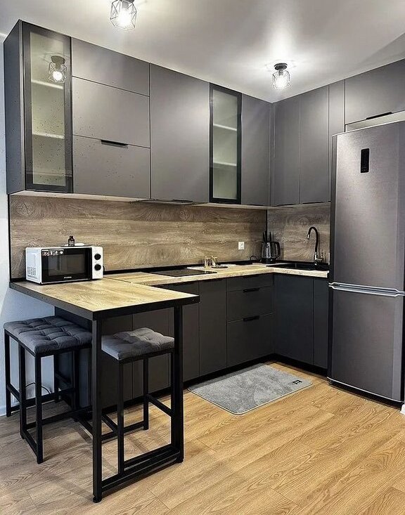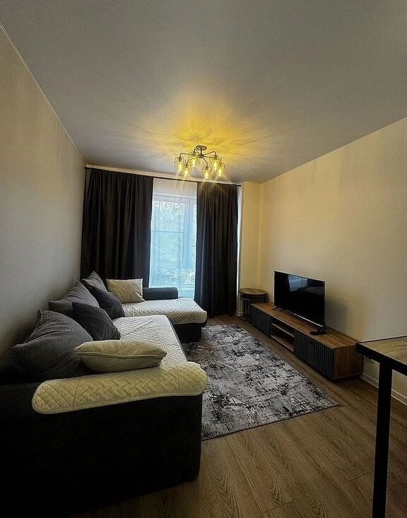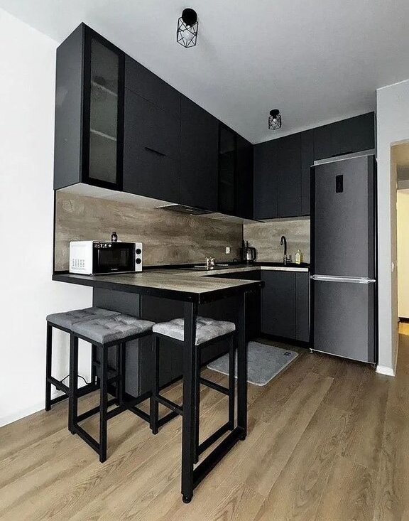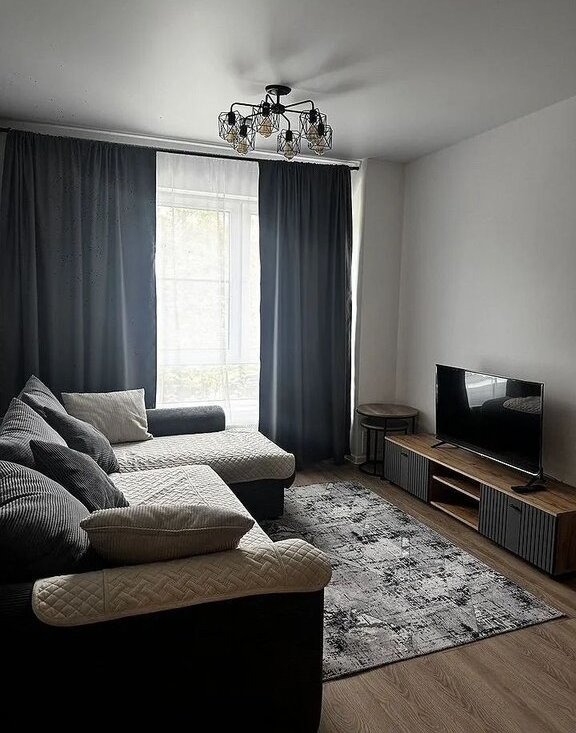 Новая уютная квартира со спальней и просторной кухней-гостиной.