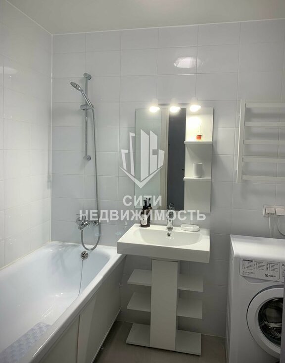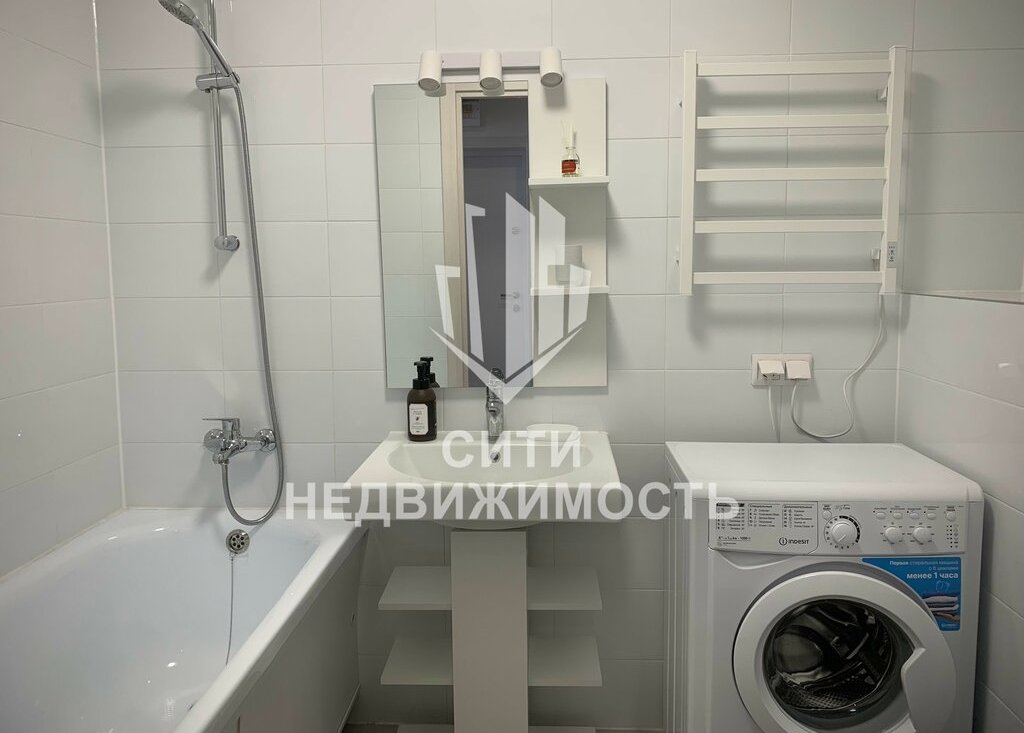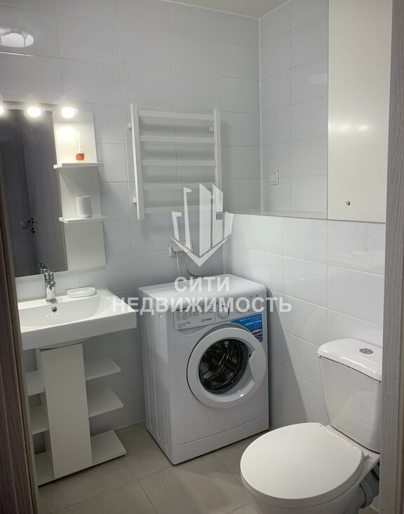 Совмещённый санузел с машинкой стиральной Индезит, электрический полотенце сушитель, зеркало с подсветкой – ВСЕ НОВОЕ.