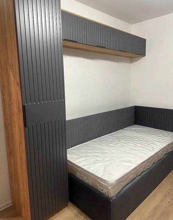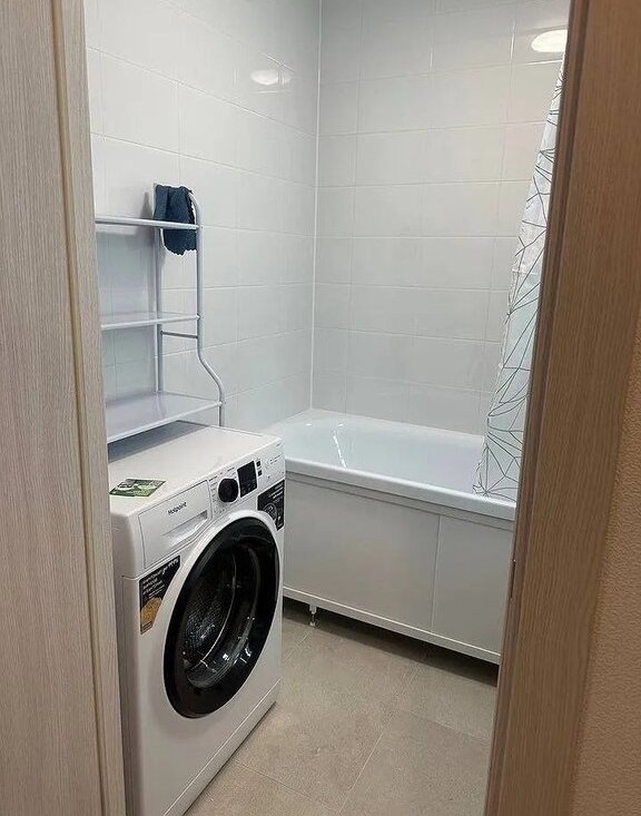 В ванной комнате раздельный санузел, установлена стиральная машина. В спальне есть вместительный шкаф и удобная кровать.