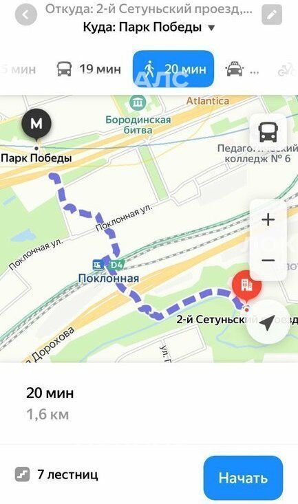 Квартира расположена в непосредственной близости от Воробьевых гор, на берегу природного заказника р.Сетунь.