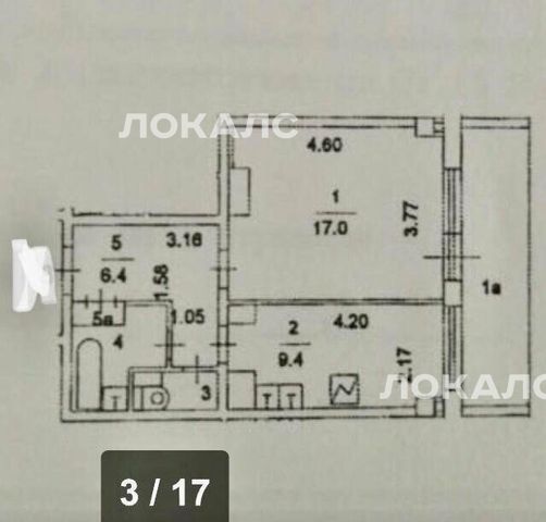 Кухня -9.4м2, комната 17м2, раздельный с/у, утепленная лоджия 6м2. Квартира теплая.