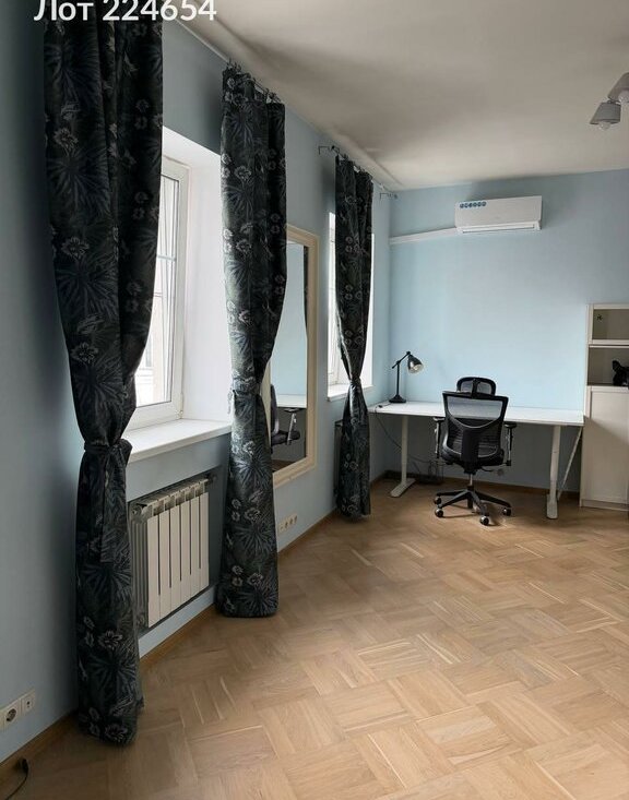 Квартира в отличном состоянии, очень светлая (пятый этаж, в комнате два окна, на кухне изящный балкончик). В комнате установлен кондиционер (сплит система).