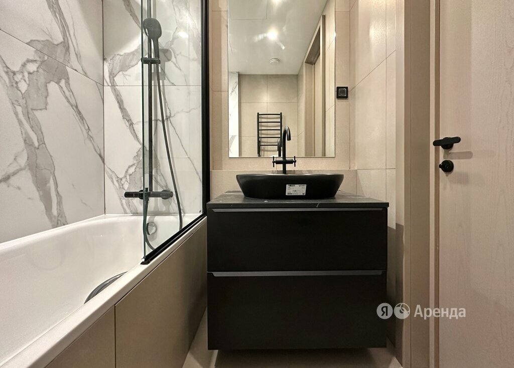 Сдаётся 1-комнатная квартира площадью 38 кв.м. с дизайнерским ремонтом на 22 этаже в 40-этажном доме на срок от 11 месяцев. Из техники есть: