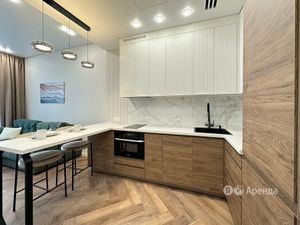 Сдаётся 1-комнатная квартира площадью 41 кв.м. с дизайнерским ремонтом на 43 этаже в 11-этажном доме на срок от 11 месяцев. Из техники есть: