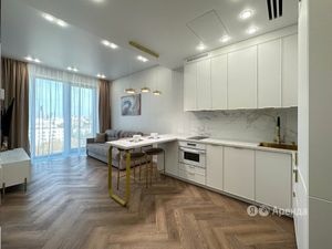 Сдаётся 1-комнатная квартира площадью 41 кв.м. с дизайнерским ремонтом на 22 этаже в 43-этажном доме на срок от 11 месяцев. Из техники есть: