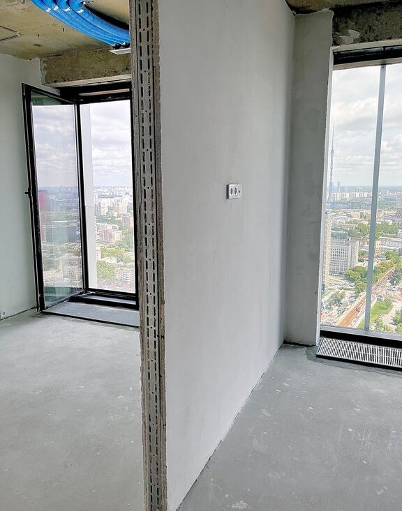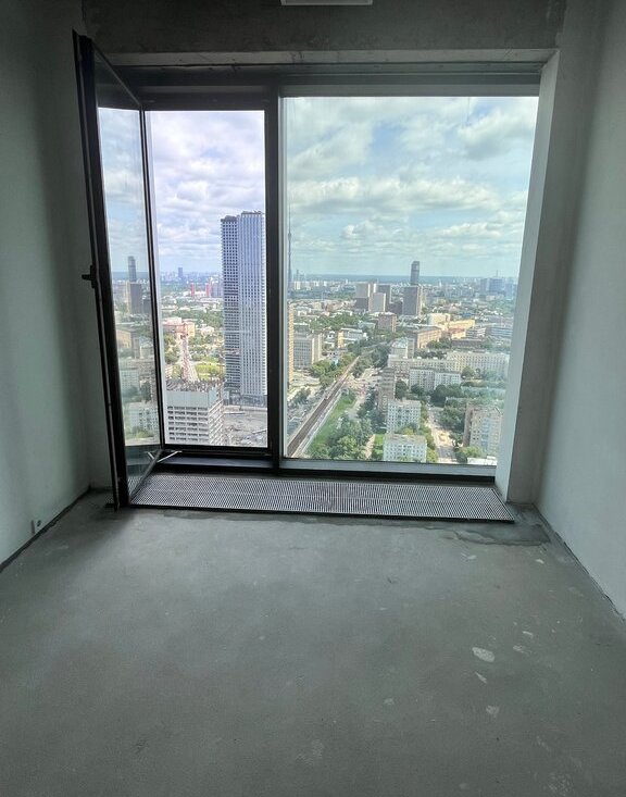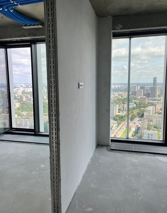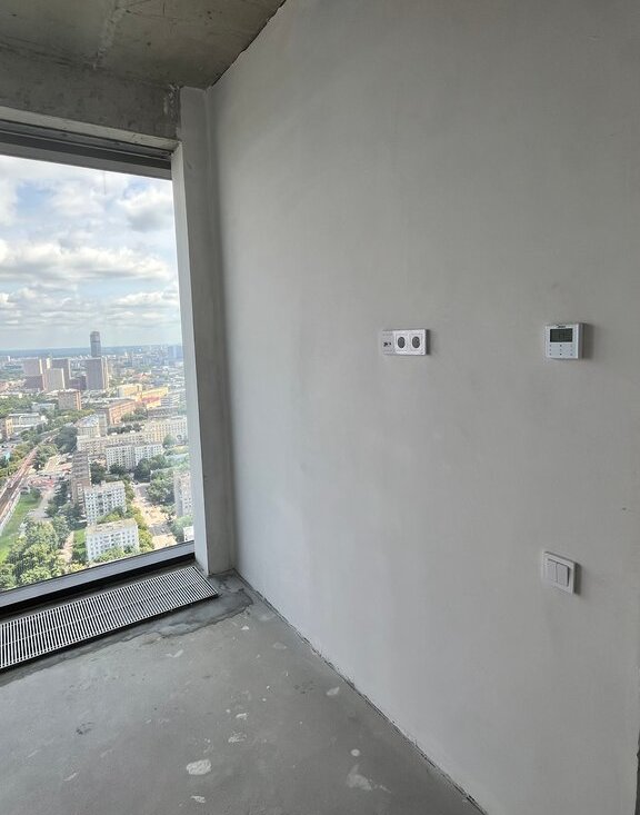 Панорамные окна в пол имеют энергоэффективное шумоизолирующее стекло. Вдоль окон выполнены встроенные в пол конвекторы отопления. По плану предусмотрено размещение в квартире одной спальни, кухни-гостиной и совмещённого санузла. Высота потолков в квартире 3 метра. В отличие от других башен, которые закрывают обзор из окна, здесь имеется шикарный вид на Останкинскую Телебашню.