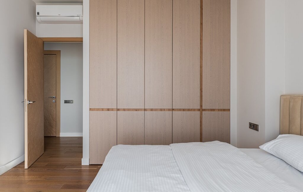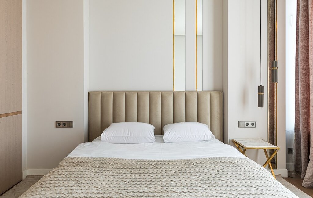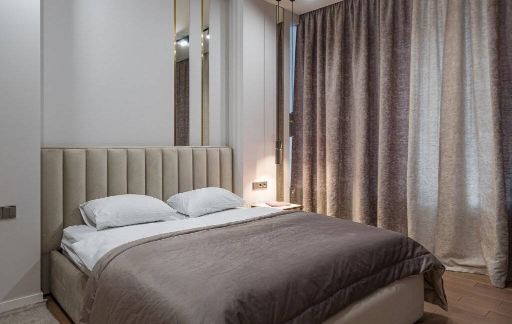 Большая спальня с комфортной кроватью и плотными шторами — тишина и полноценный отдых после насыщенного дня.
