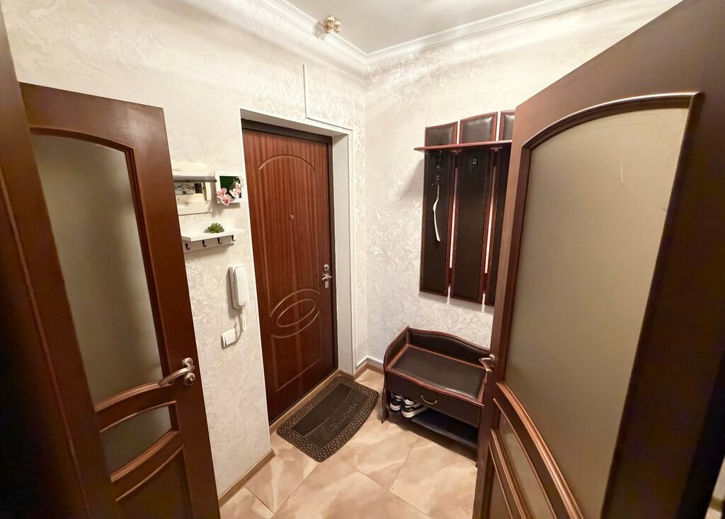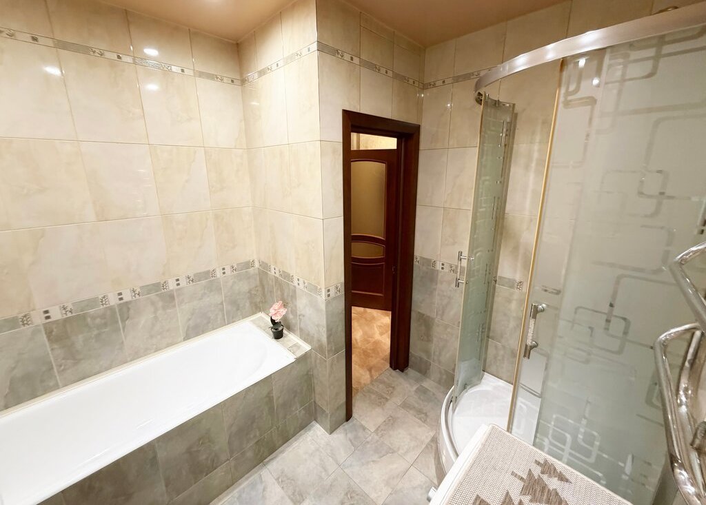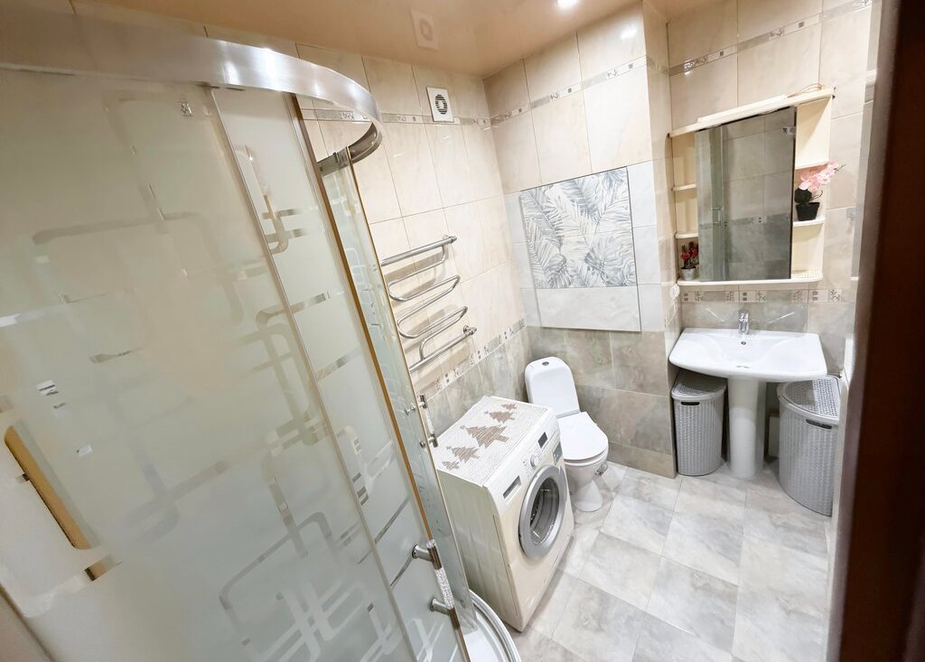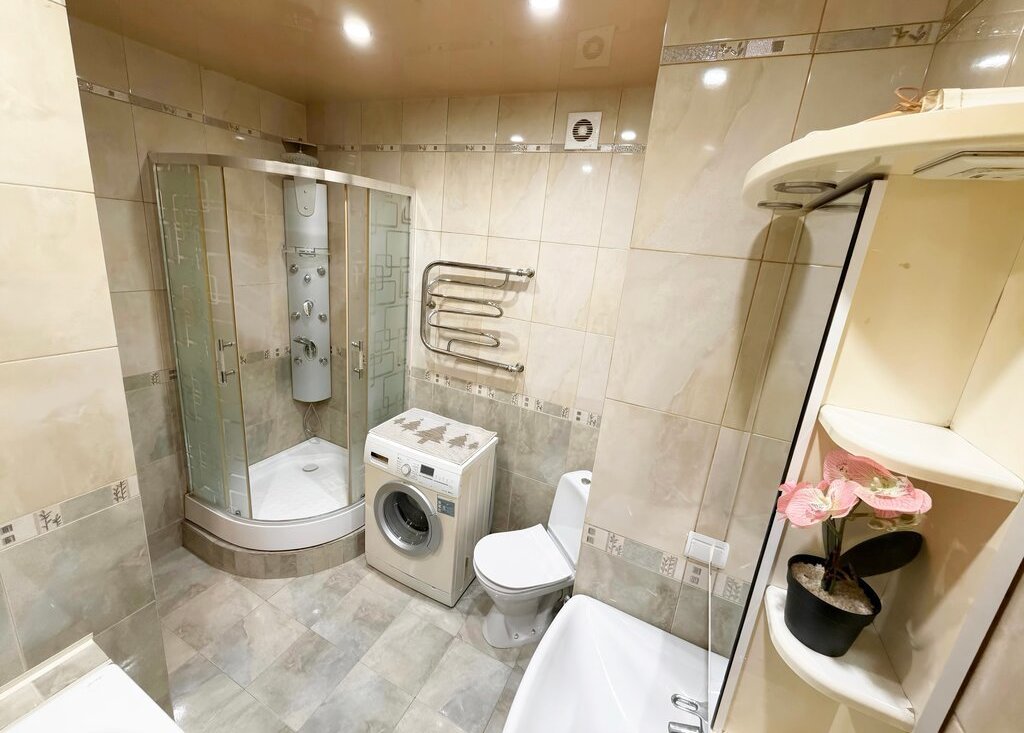 Квартира оборудована всем необходимым для проживания. Имеется вместительная гардеробная. Редкое сочетание ванной с душевой кабины в однокомнатной квартире.