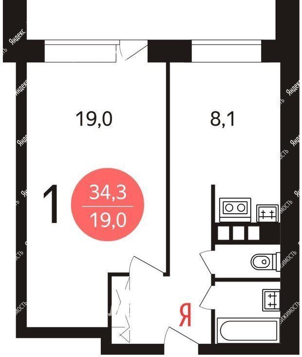 1-комнатная квартира: Москва, 5-я Кожуховская улица, 14к1 (34.3 м²)