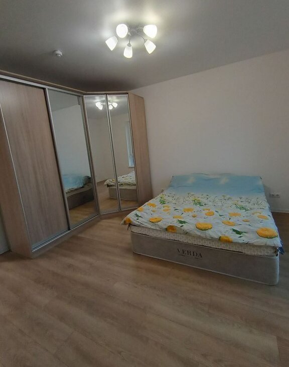 — Ламинат в комнате, остаётся мебель шкаф и кровать Verda.
