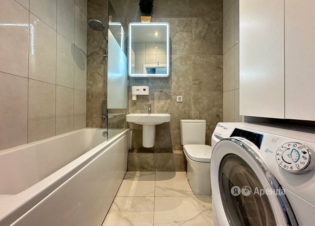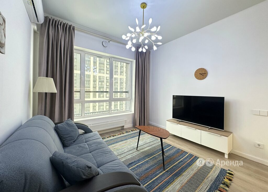 Сдаётся 1-комнатная квартира площадью 37 кв.м. с дизайнерским ремонтом на 9 этаже в 27-этажном доме на срок от 11 месяцев. Из техники есть: