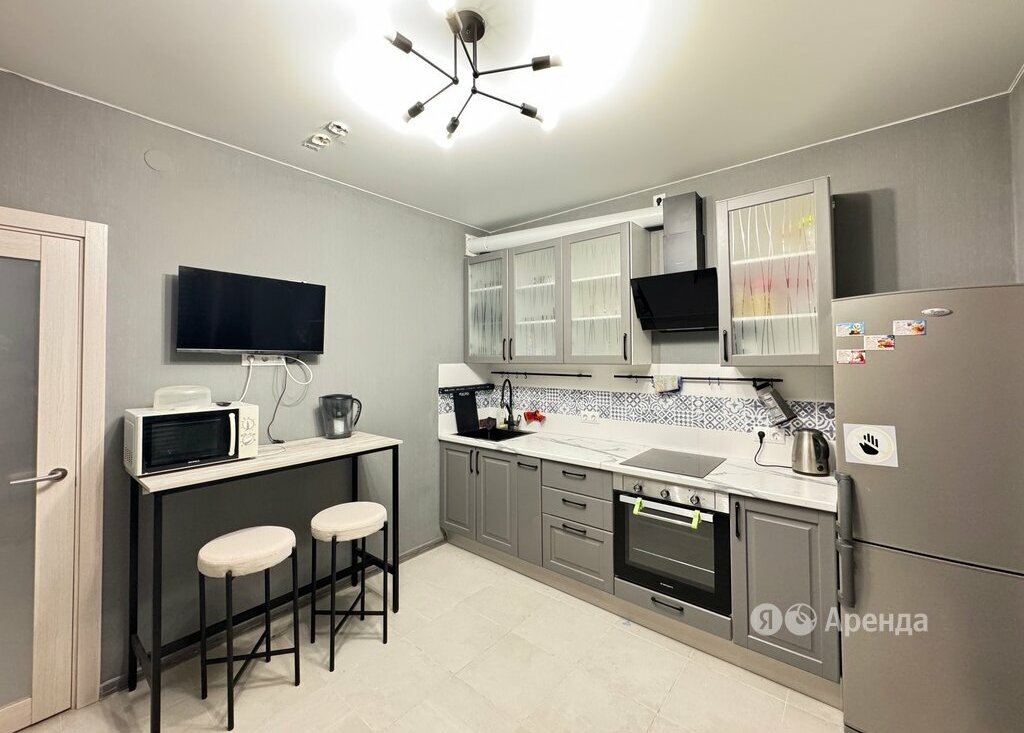 Сдаётся 1-комнатная квартира площадью 43 кв.м. с дизайнерским ремонтом на 4 этаже в 24-этажном доме на срок от 11 месяцев. Из техники есть: