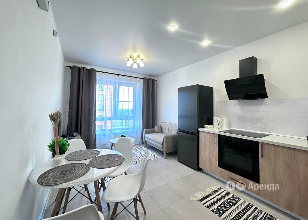 Сдаётся 1-комнатная квартира площадью 40 кв.м. с евроремонтом на 28 этаже в 33-этажном доме на срок от 11 месяцев. Из техники есть: