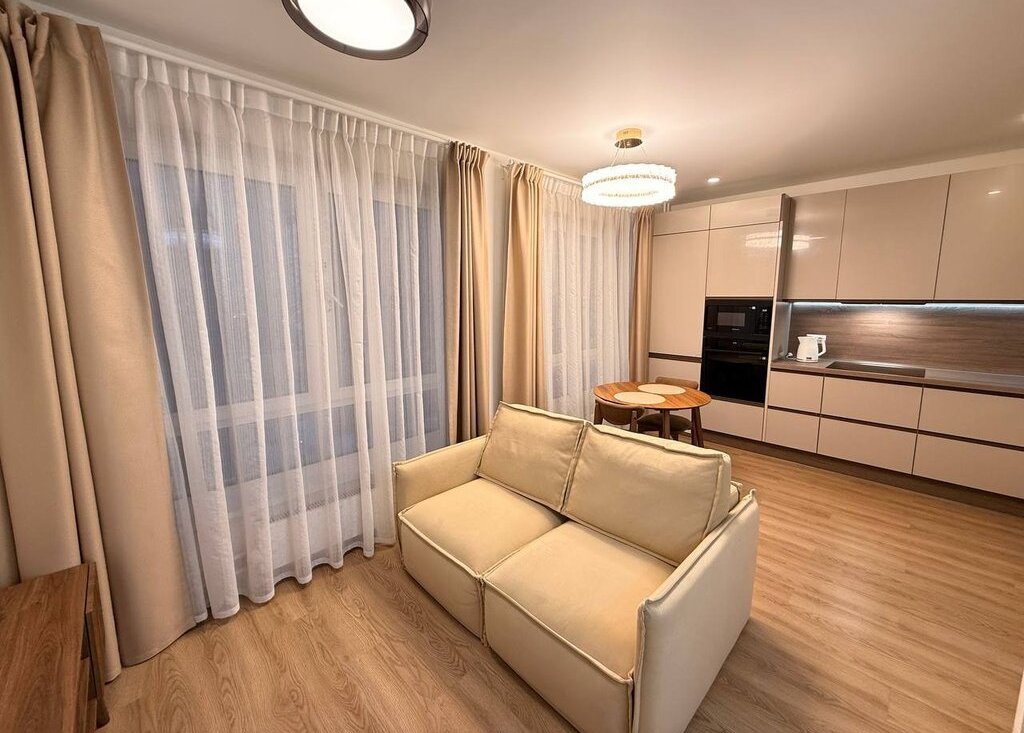 В квартире выполнен качественный ремонт. Квартира полностью укомплектована современной мебелью и техникой от ведущих производителей.