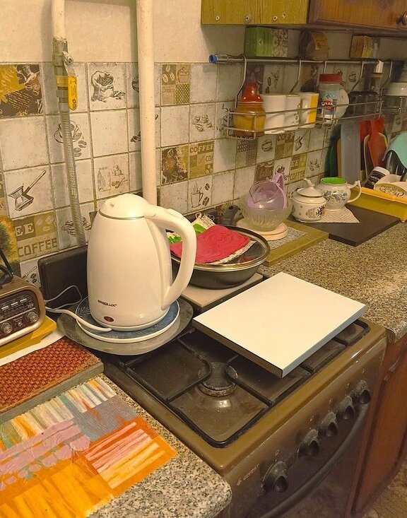 Техника: газовая плита-духовка, стиральная машина, холодильник, чайник, утюг, телевизор-2шт.