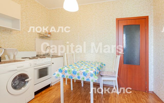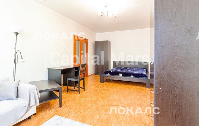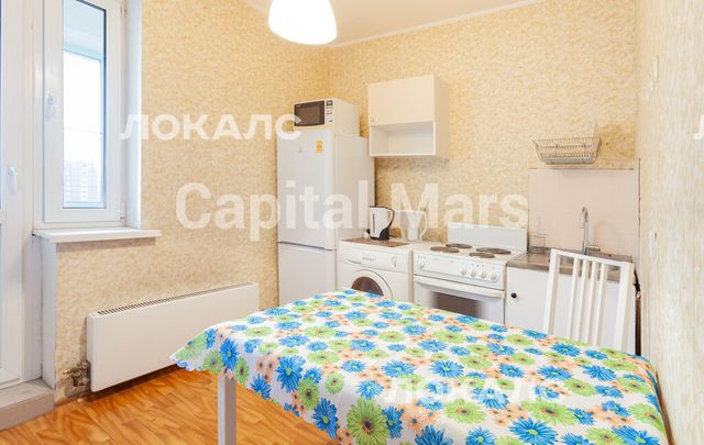 Предлагается однокомнатная квартира в современном доме рядом со станцией метро "Щукинская". Комната меблирована, в том числе диваном, кроватью, письменным столом. На кухне установлен гарнитур и набор техники, включая микроволновую и духовую печи. Имеется стиральная машина.