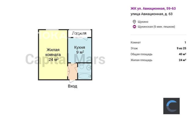 1-комнатная квартира: Москва, Авиационная улица, 63 (40 м²)