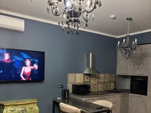 Уютная кухня, оборудованная необходимой техникой (холодильник, плита, микроволновая печь).