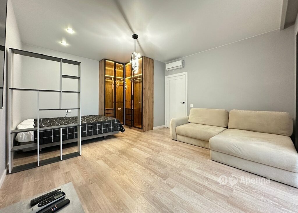 Сдаётся 1-комнатная квартира площадью 47 кв.м. с дизайнерским ремонтом на 12 этаже в 15-этажном доме на срок от 11 месяцев. Из техники есть: