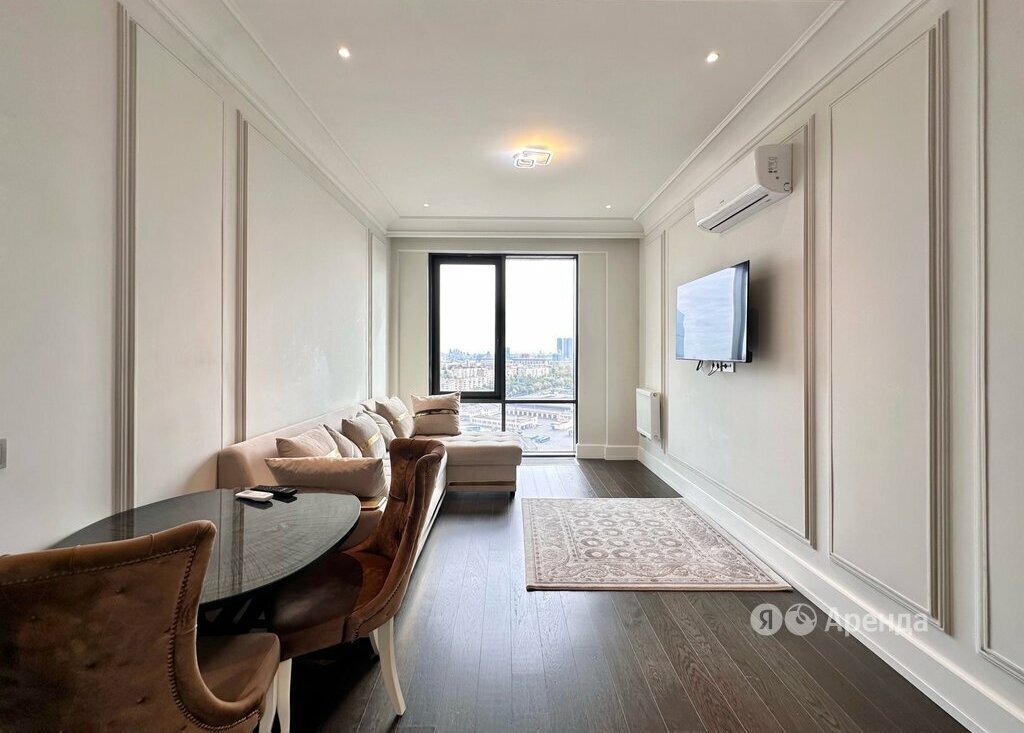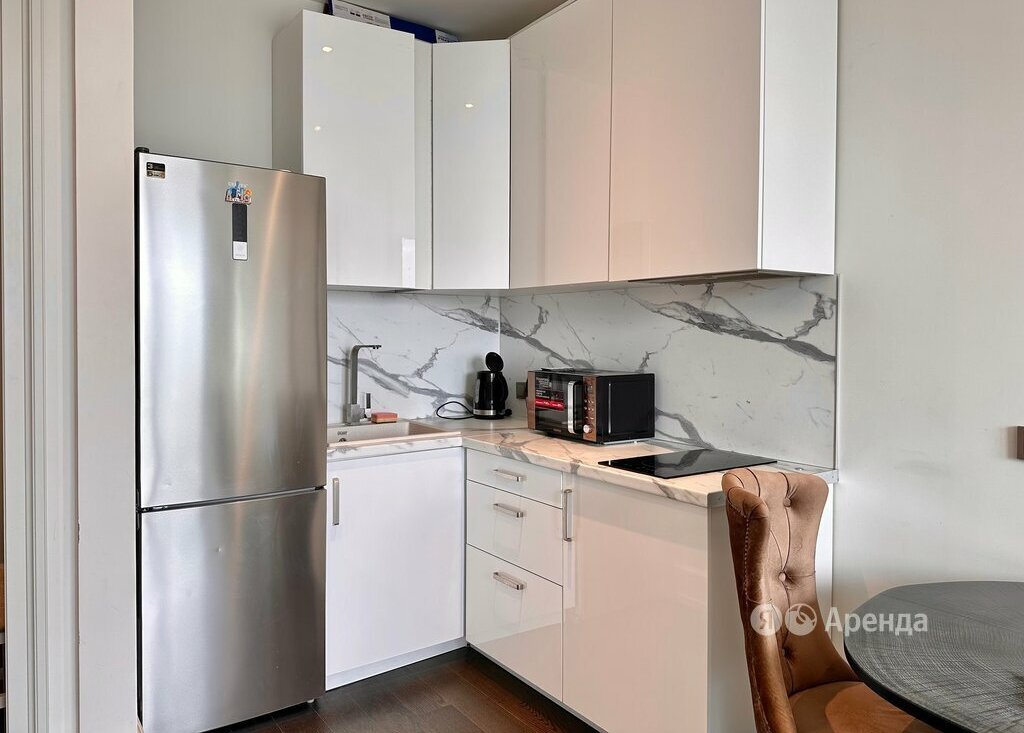 Сдаётся 1-комнатная квартира площадью 42 кв.м. с дизайнерским ремонтом на 20 этаже в 30-этажном доме на срок от 11 месяцев. Из техники есть: