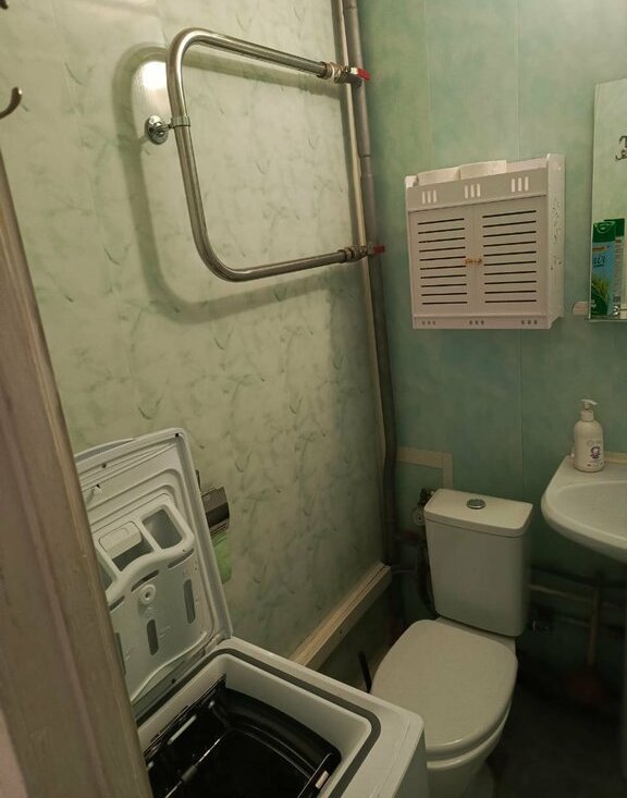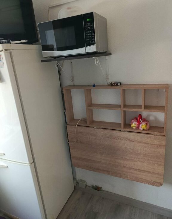 В квартире есть все необходимое для комфортного проживания: мебель на кухне и в комнате, холодильник, телевизор и стиральная машина. Санузел совмещенный, оснащен ванной. Имеется застеклённый балкон, где можно отдохнуть на свежем воздухе. Дом оборудован пассажирским и грузовым лифтами, есть мусоропровод, что делает проживание еще более удобным.
